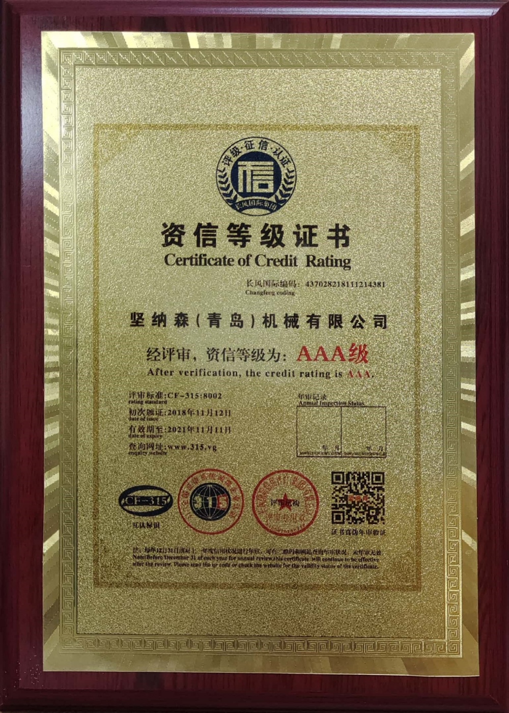 資信等級證書